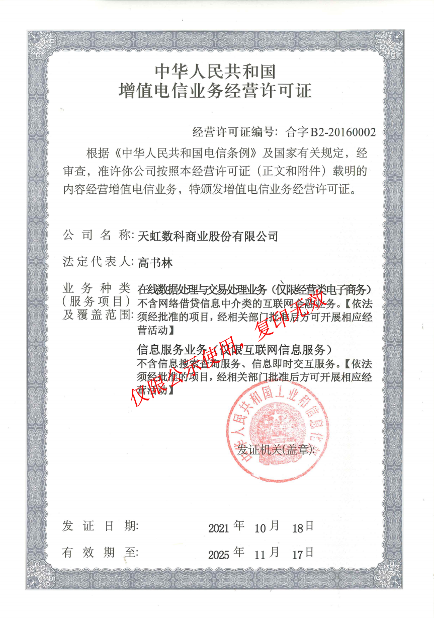 2、我公司亦未授權或利用任何其他網站(zhàn)、APP、微內熱信公衆号、微博等線上形式以“天虹”名義從事任何刷單活動(dòng),任何數快以我公司名義邀約刷單行為均屬詐騙。