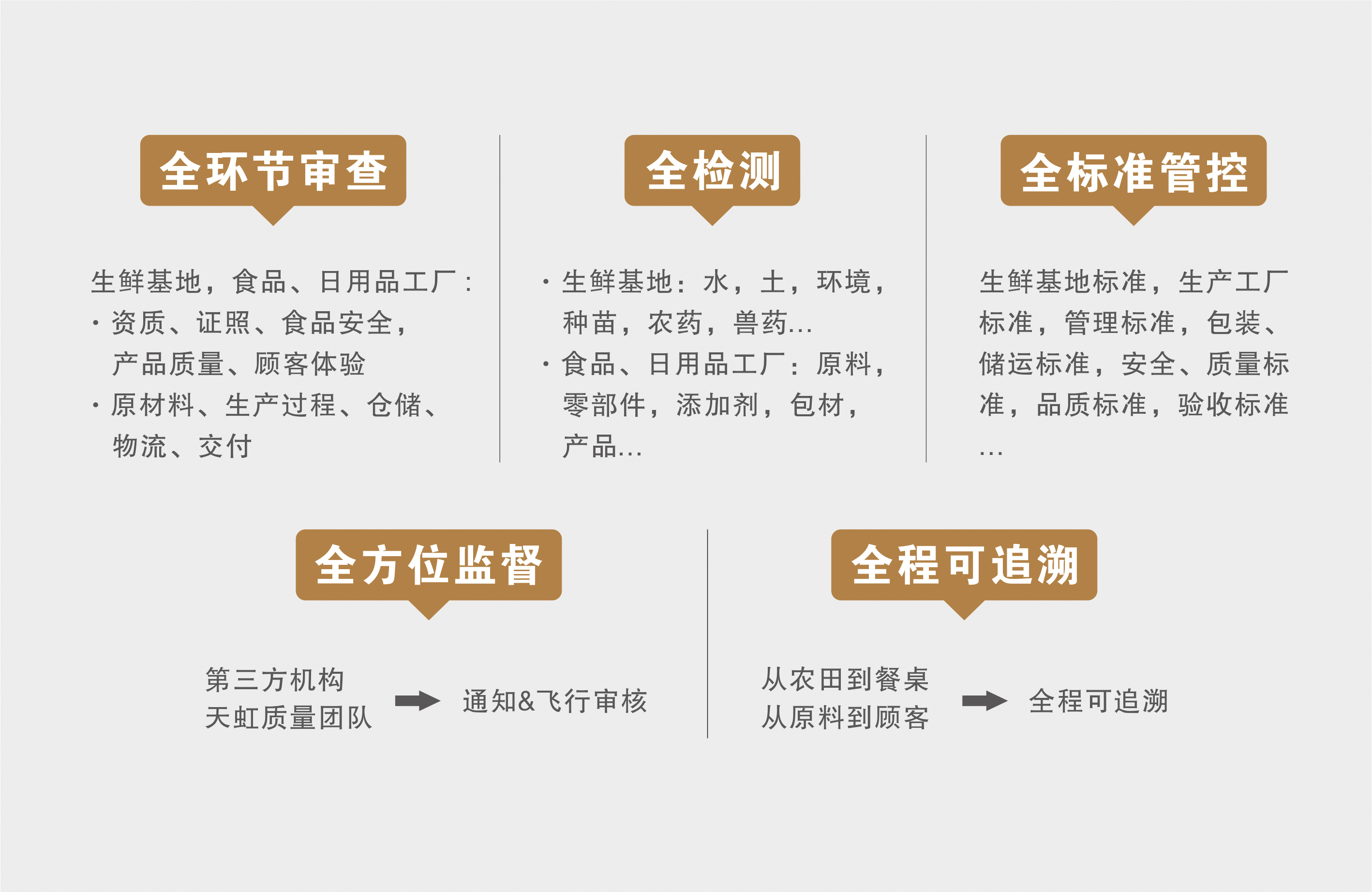 從農田到餐桌、從原料、生産、儲運到顧客的五“全”品質保證和(hé美跳)現代化溯源技術(shù),不斷增強顧客朋友的獲得感、幸福感和(hé)車能安全感。